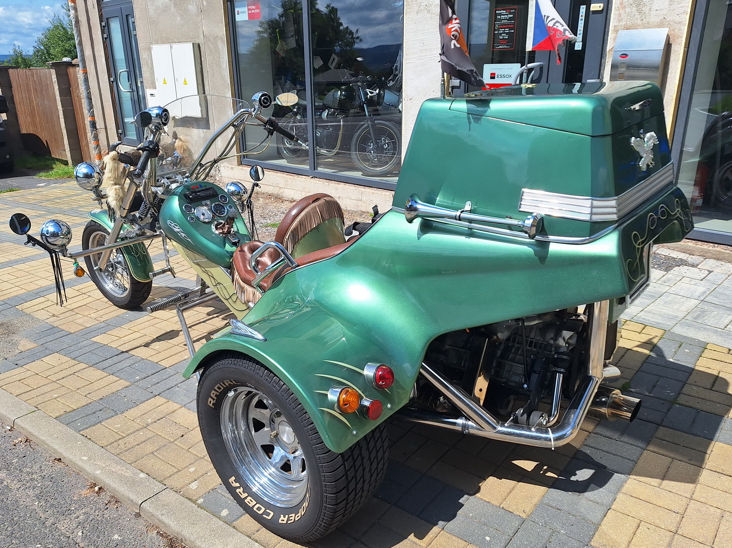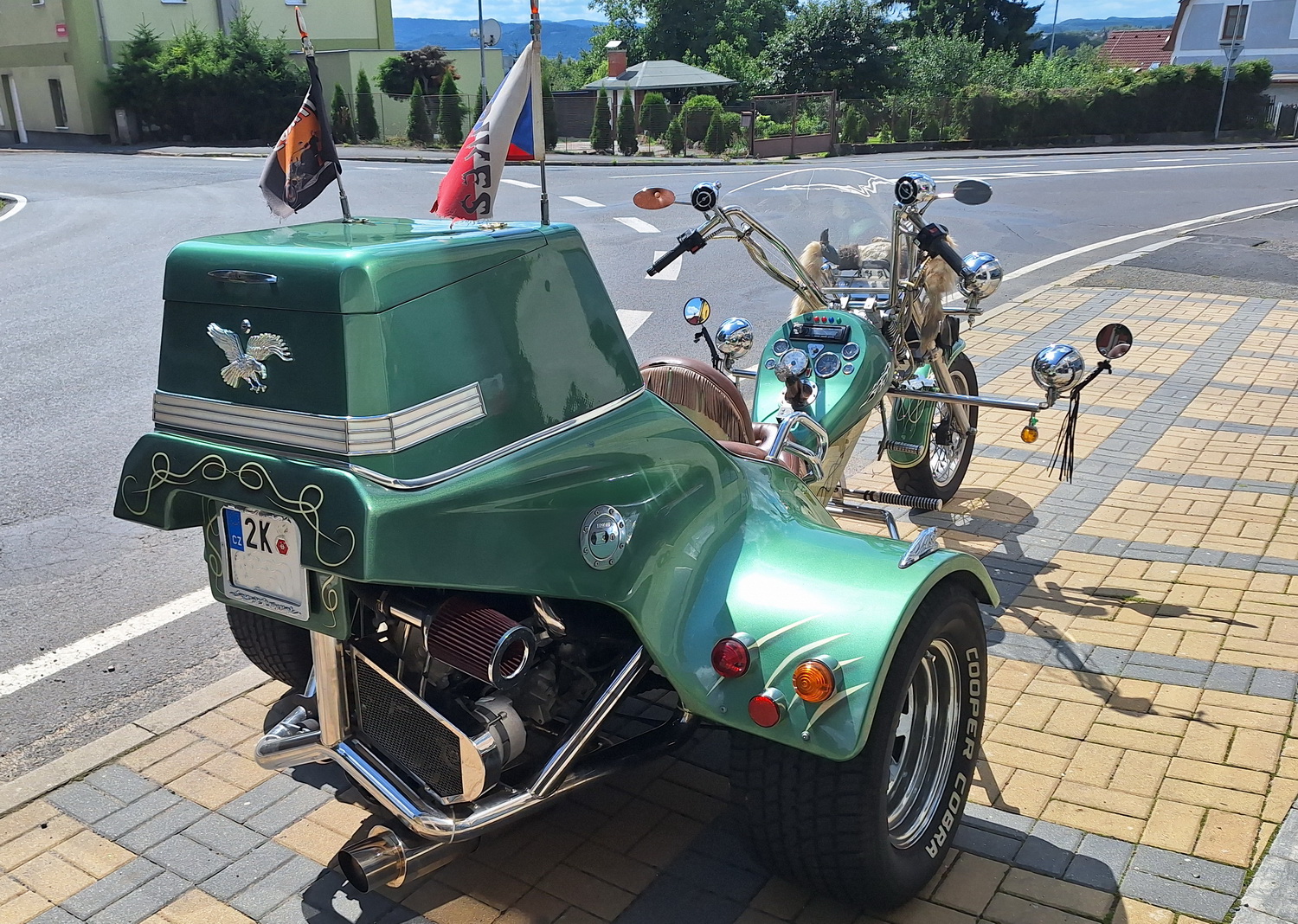 CZ-TP, vyrobené v ČR firmou Autohandl s.r.o. Brno, tříkolka s motorem Škoda 1.3/50 kW, zadní pneu 295/50R15, nejvyšší rychlost cca.130km/h, v původním stavu, nové pneu, technicky v pořádku. V případě vážného zájmu o prohlídku volejte prosím předem, přes své rozměry není umístěna na prodejně..:-)
